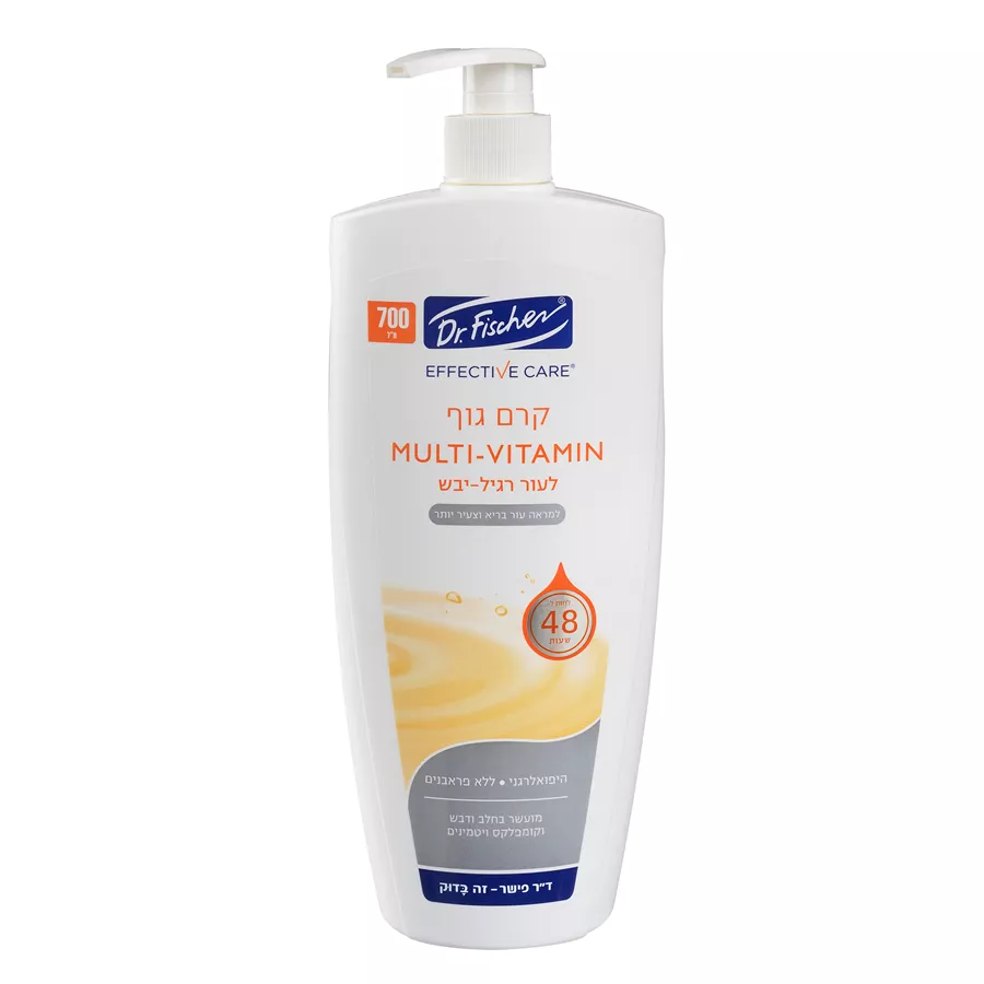 Dr. Fischer Effective Care Body Lotion 700ml קרם גוף לעור רגיל-יבש בעל מרקם נעים הנספג בקלות, מועשר בקומפלקס ייחודי המסייע בהגנה על העור מנזקי אקלים הגורמים ליובש.