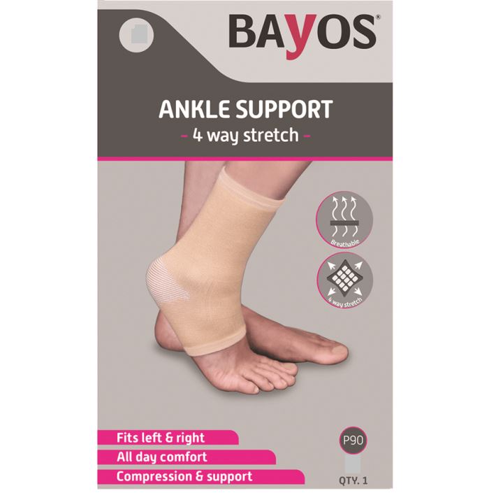 Bayos Ankle Support - 4 Way Strech השילוב של חומרים איכותיים וטכניקת הסריגה הסיבובית יוצר מתיחה בעלת ארבע כיוונים אשר מעניקה הגנה ומסייעת בתמיכה לפרקים חלשים ופצועים.